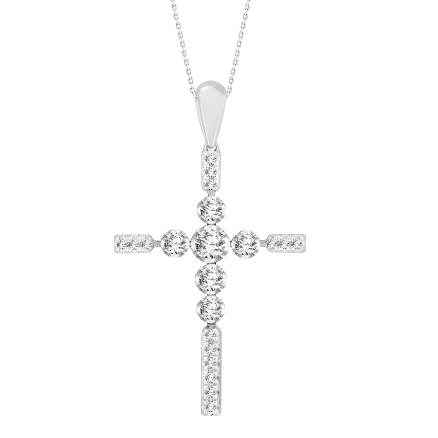 LADIES PENDANT WITH CHAIN 0.75CT ROUND DIAMOND 14K WHITE GOLD