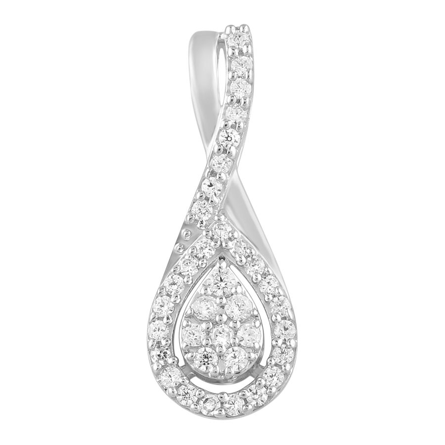 LADIES PENDANT WITH CHAIN 0.20CT ROUND DIAMOND 10K WHITE GOLD