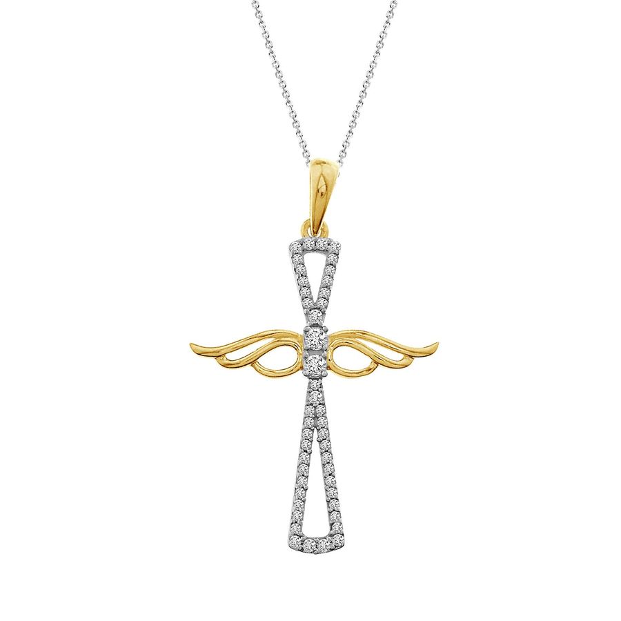 LADIES PENDANT WITH CHAIN 0.20CT ROUND DIAMOND 10K WHITE/YELLOW GOLD