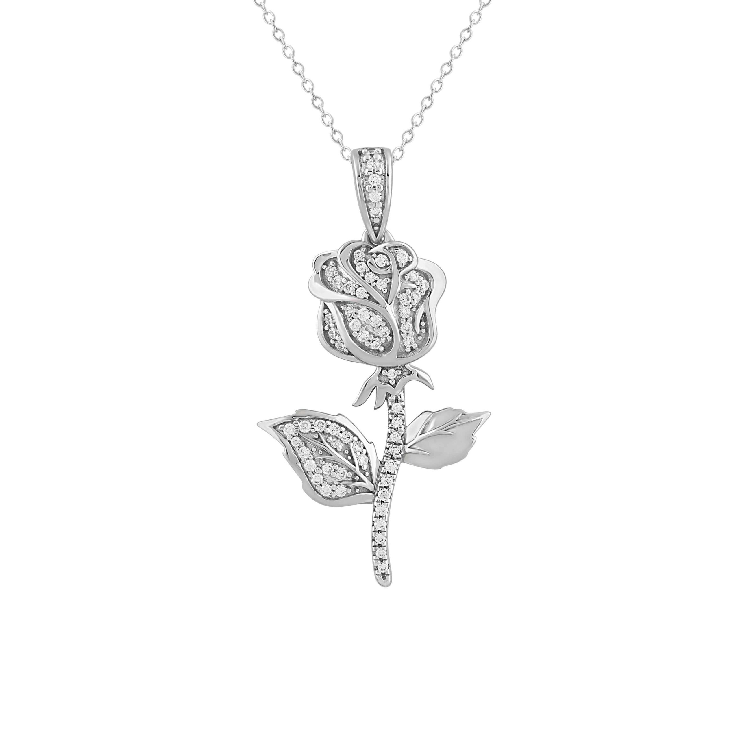 LADIES PENDANT WITH CHAIN 0.20CT ROUND DIAMOND 14K WHITE GOLD