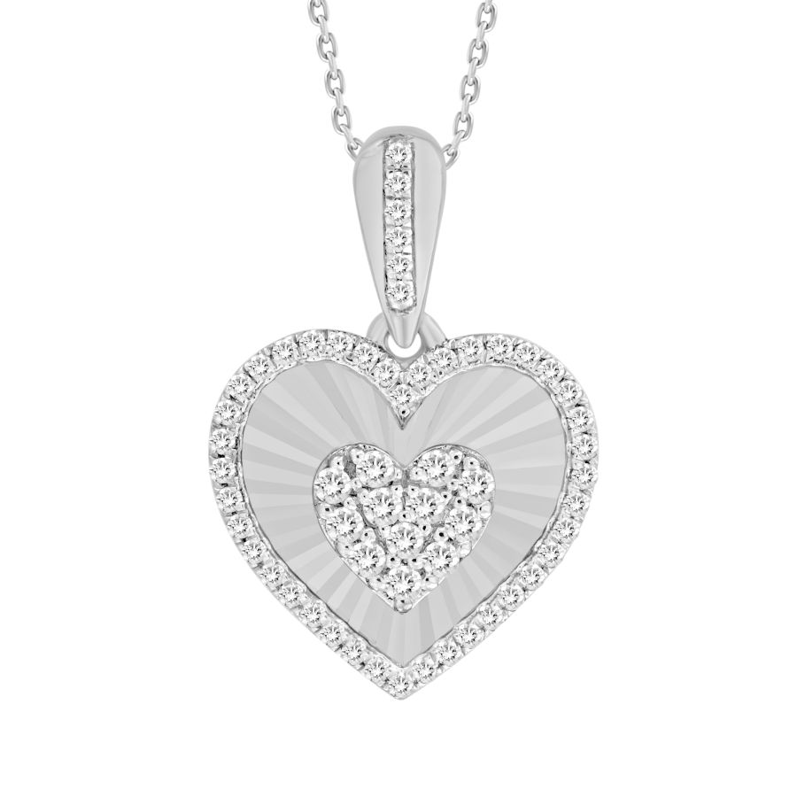 LADIES PENDANT WITH CHAIN 0.25CT ROUND DIAMOND 10K WHITE GOLD