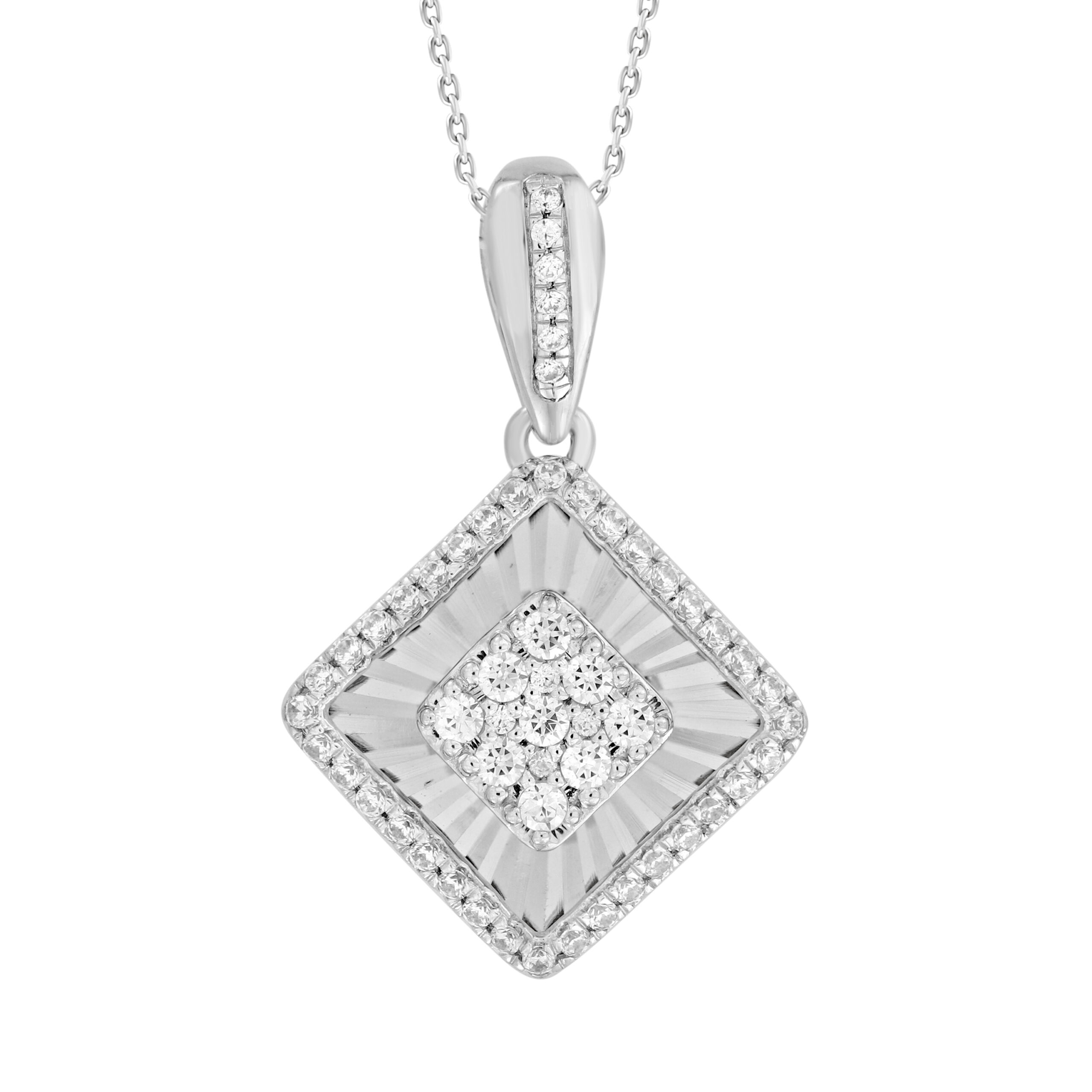 LADIES PENDANT WITH CHAIN 0.25CT ROUND DIAMOND 10K WHITE GOLD