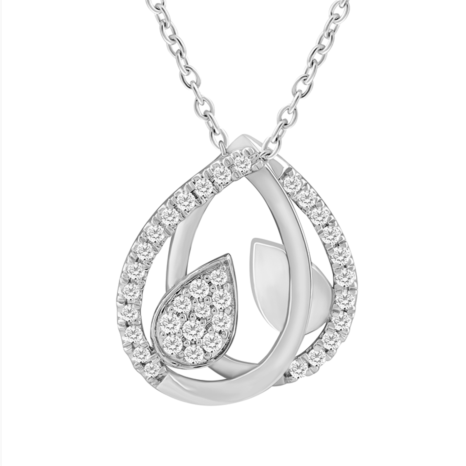 LADIES PENDANT WITH CHAIN 0.25CT ROUND DIAMOND 10K WHITE GOLD