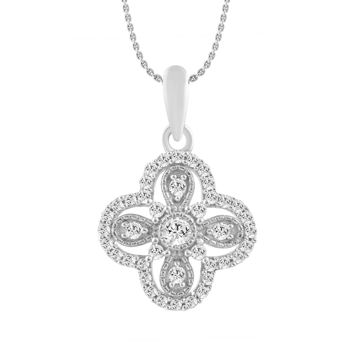 Home Pendants/charms LADIES PENDANT WITH CHAIN 0.25CT ROUND DIAMOND 10K WHITE GOLD