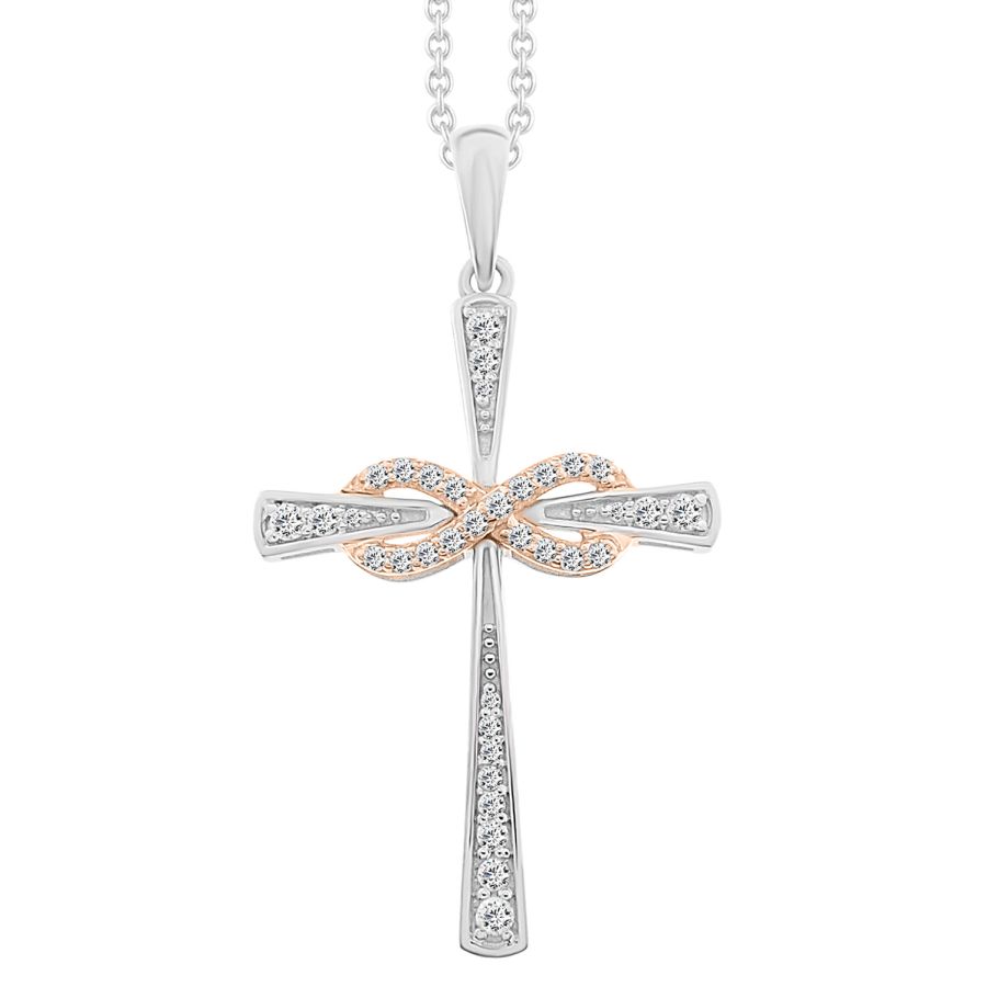 LADIES PENDANT WITH CHAIN 0.25CT ROUND DIAMOND 10K WHITE/ROSE GOLD