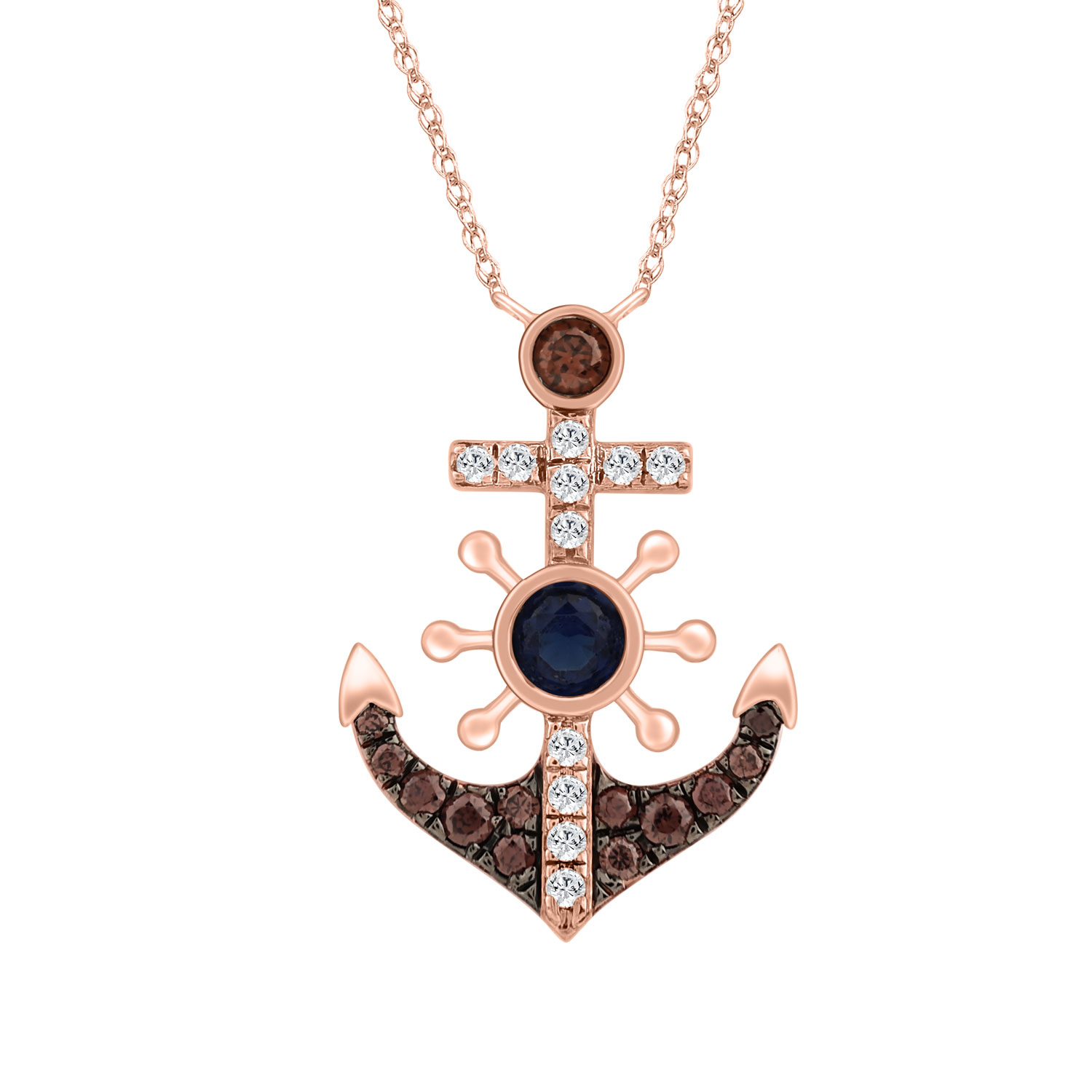 LADIES PENDANT WITH CHAIN 0.30CT ROUND/DARK BROWN/BLUE DIAMOND 14K ROSE GOLD