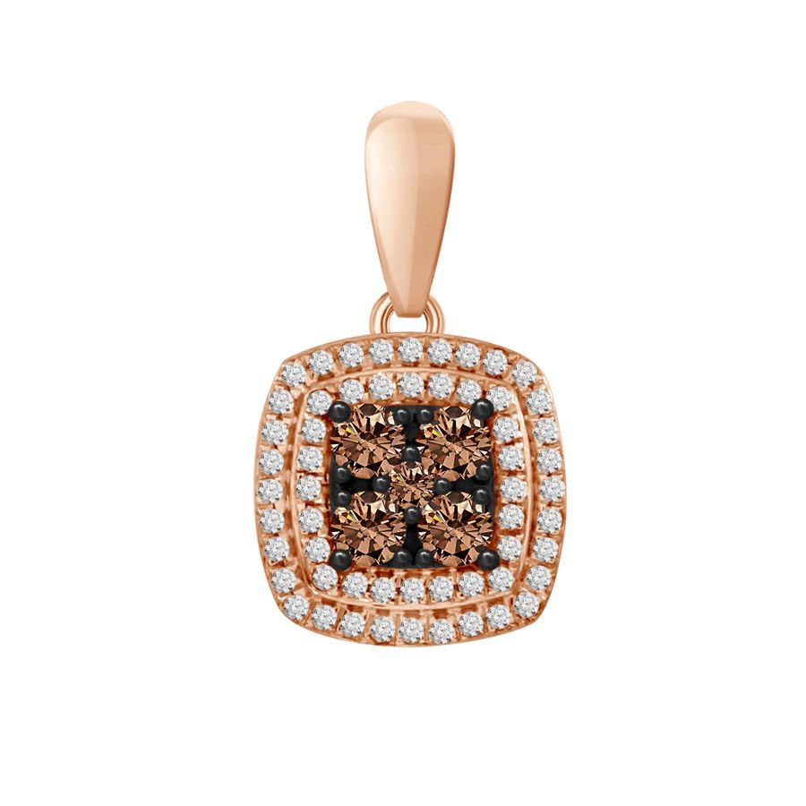 LADIES PENDANT WITH CHAIN 0.33CT ROUND DARK BROWN DIAMOND 10K ROSE GOLD