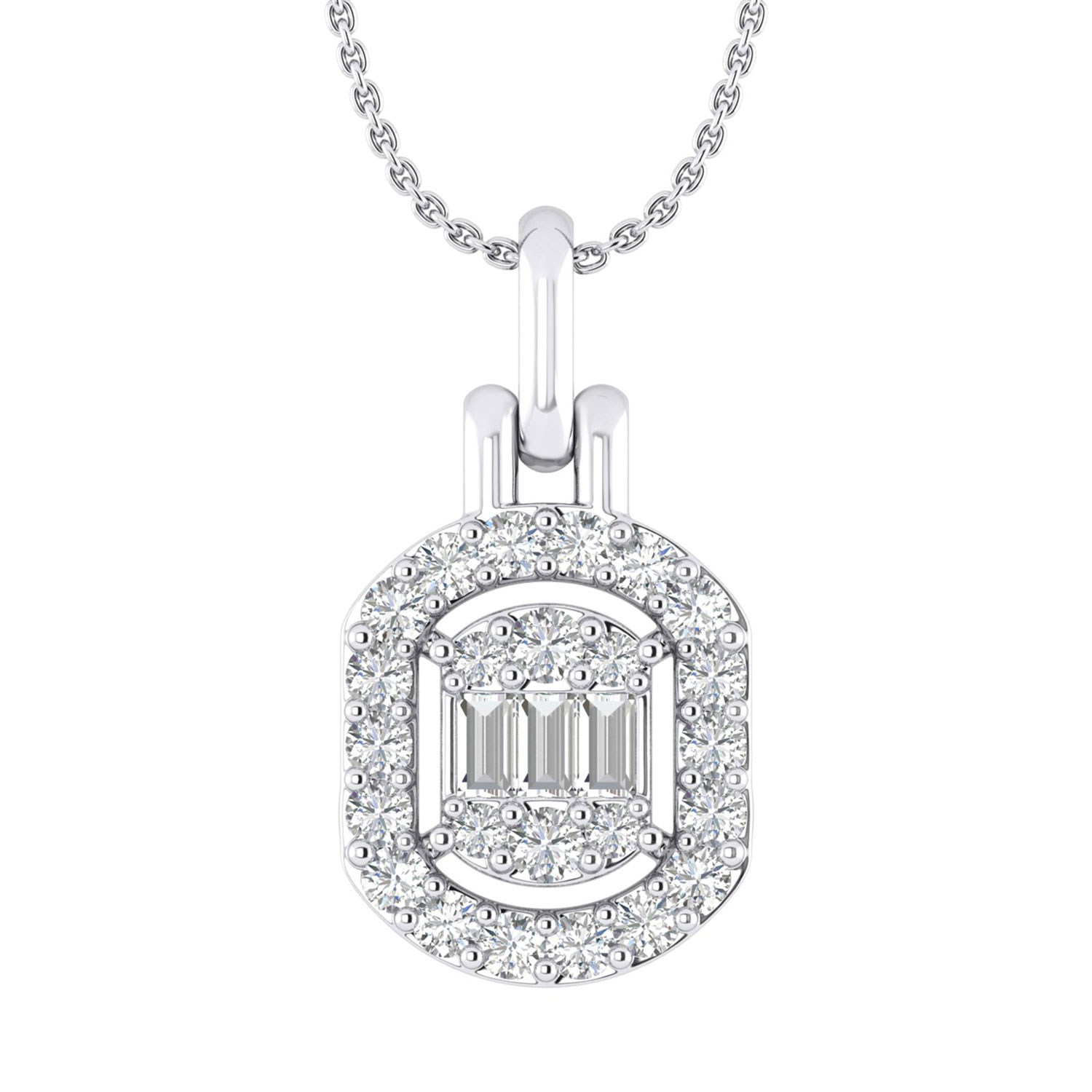 LADIES PENDANT WITH CHAIN 0.50CT ROUND/BAGUETTE DIAMOND 10K WHITE GOLD