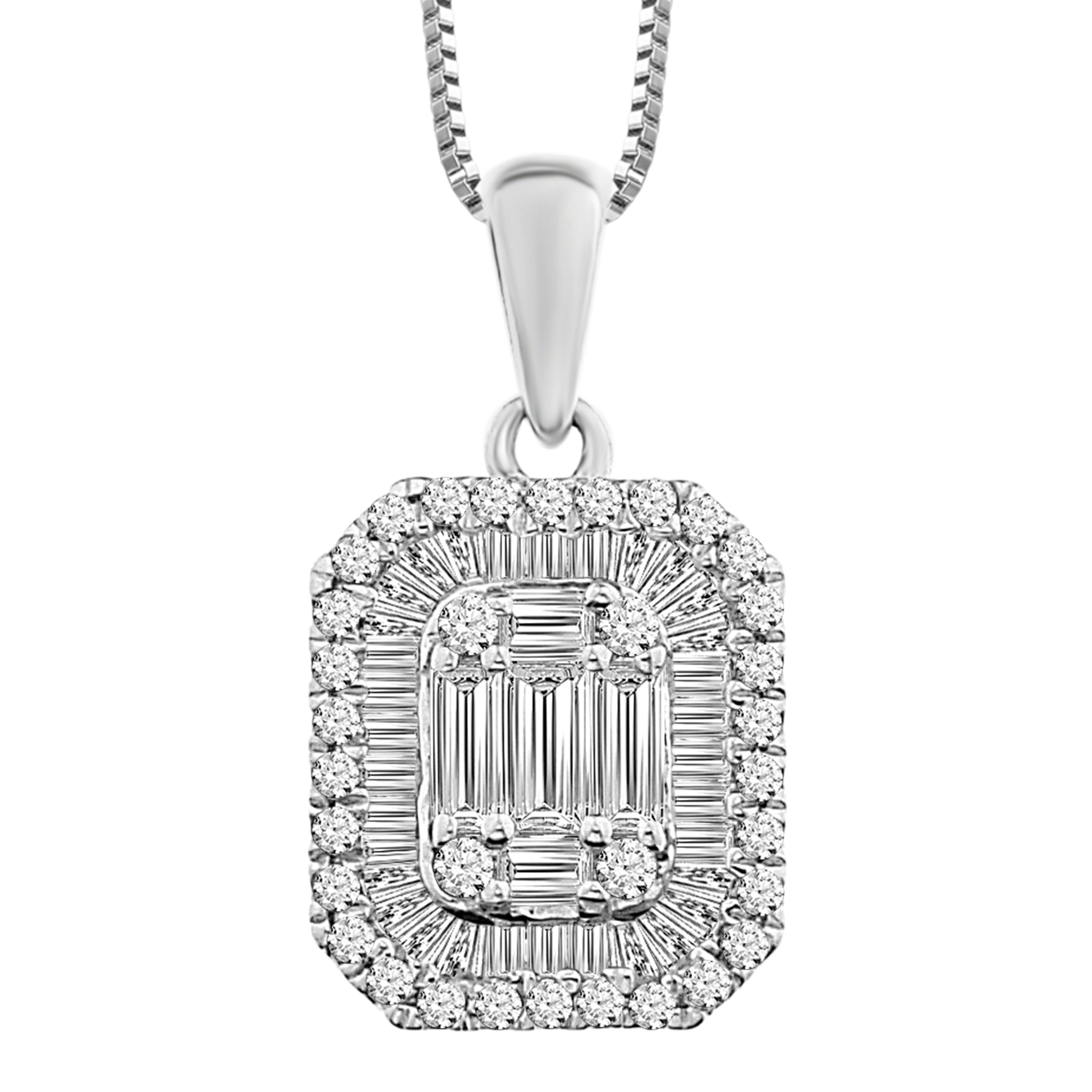 LADIES PENDANT WITH CHAIN 0.50CT ROUND/BAGUETTE DIAMOND 10K WHITE GOLD