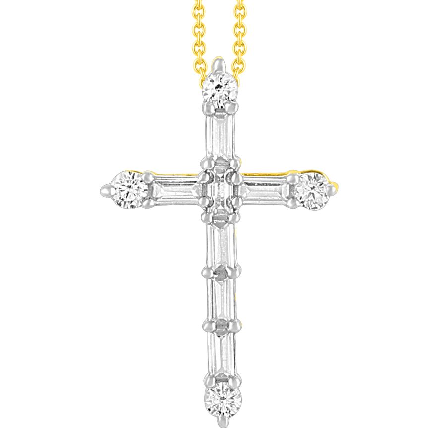 LADIES PENDANT WITH CHAIN 0.50CT ROUND/BAGUETTE DIAMOND 14K YELLOW GOLD (SI QUALITY)