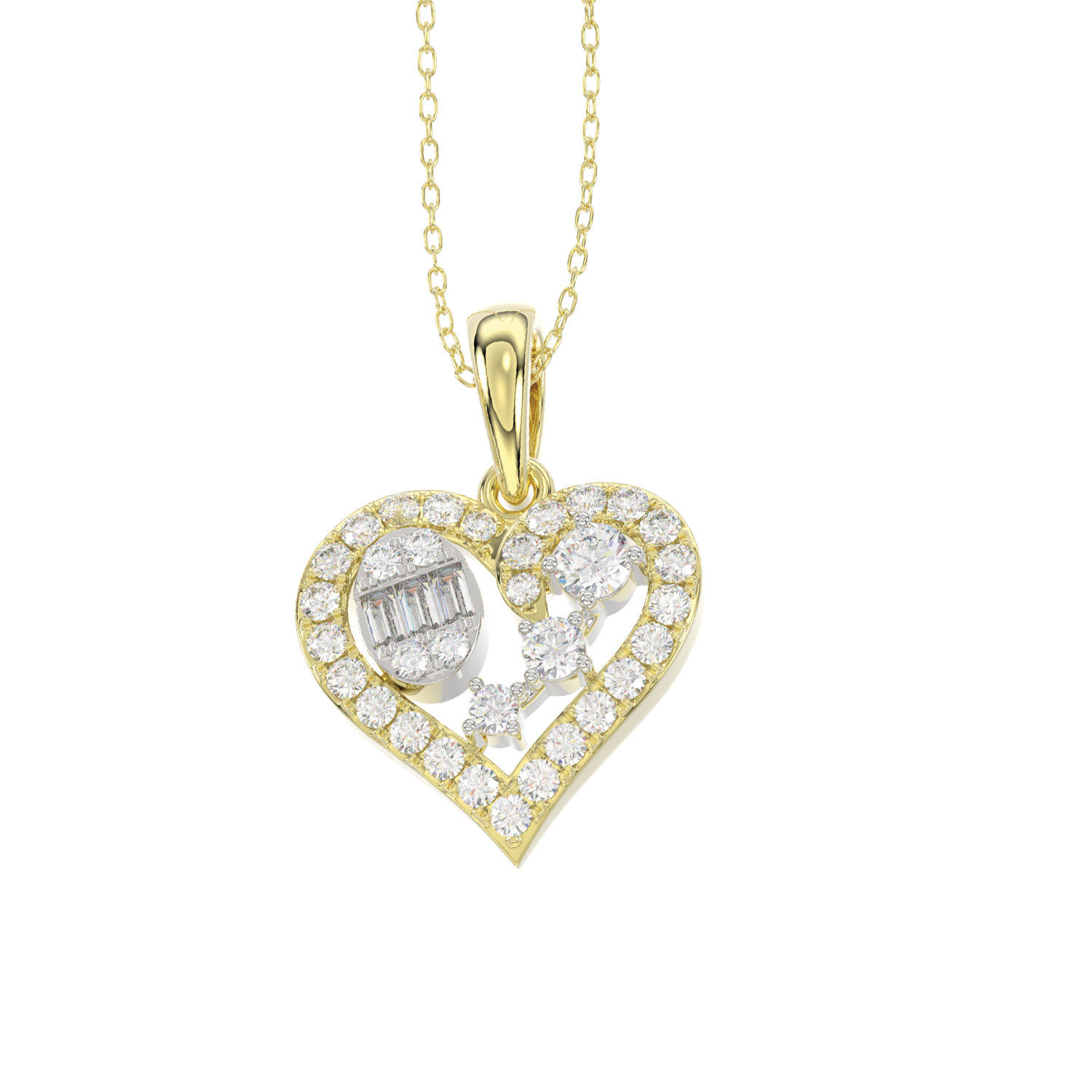 LADIES PENDANT WITH CHAIN 0.50CT ROUND/BAGUETTE DIAMOND 14K YELLOW GOLD