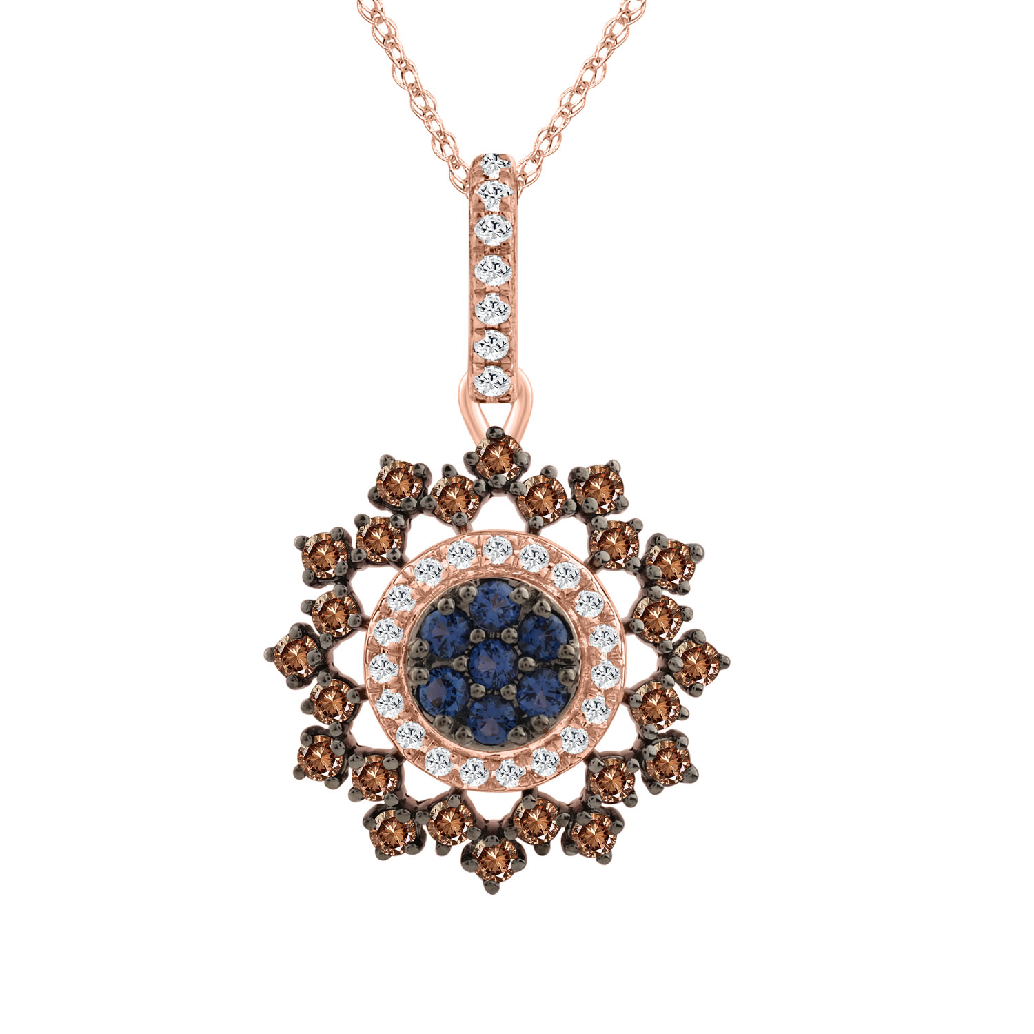 LADIES PENDANT WITH CHAIN 0.50CT ROUND/DARK BROWN/BLUE DIAMOND 14K ROSE GOLD