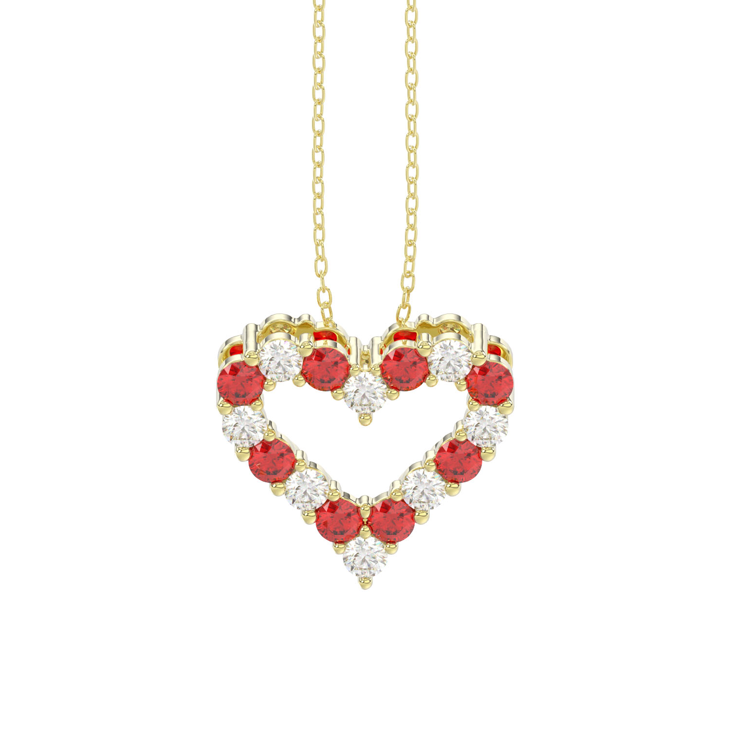 Home Pendants/charms LADIES PENDANT WITH CHAIN 0.75CT ROUND/RUBY DIAMOND 14K YELLOW GOLD (CENTER STONE RUBY DIAMOND 1.62CT)