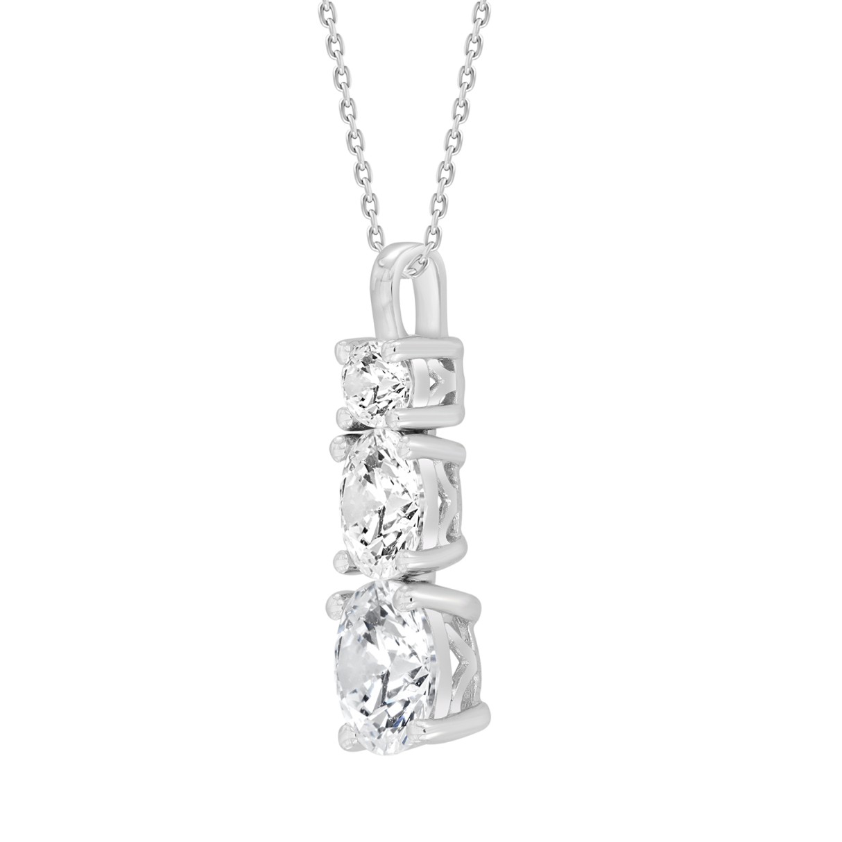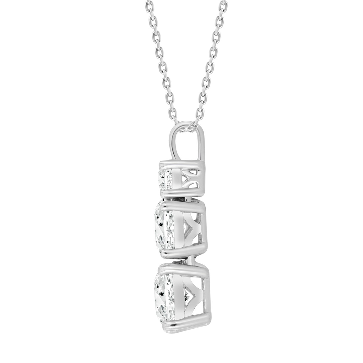 LADIES SOLITAIRE PENDANT WITH UNDER-PASS CHAIN 3CT ROUND DIAMOND 14K WHITE GOLD
