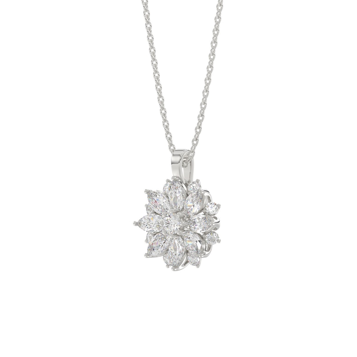 LADIES PENDANT WITH CHAIN 1CT ROUND/MARQUISE DIAMOND 14K WHITE GOLD