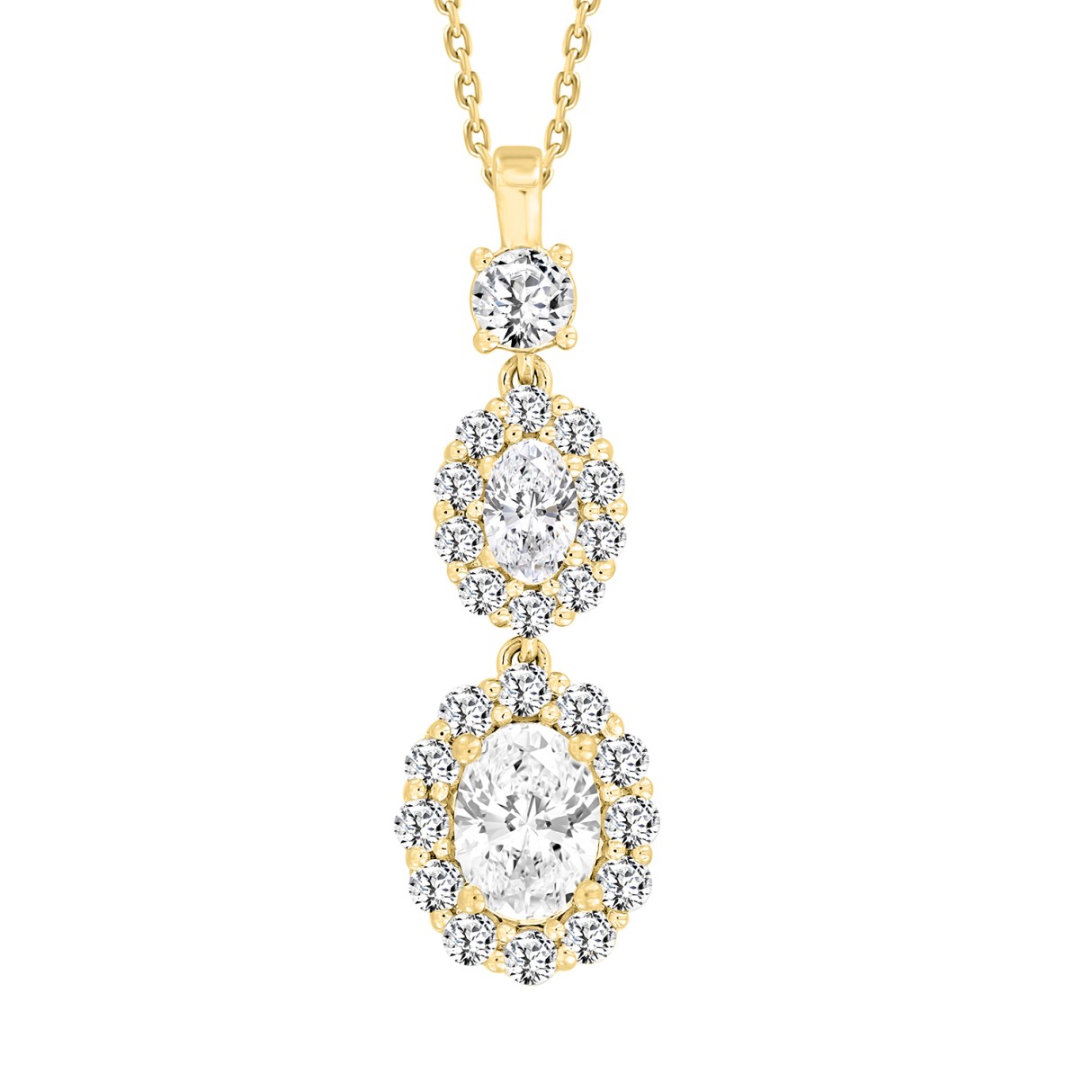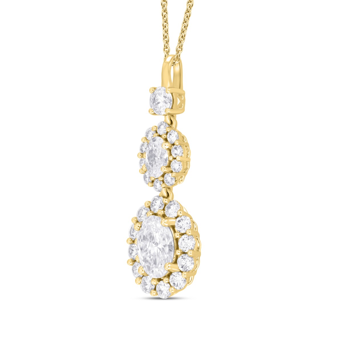 LADIES PENDANT WITH CHAIN 2 1/4CT ROUND/OVAL DIAMOND 14K YELLOW GOLD (CENTER STONE OVAL DIAMOND 1CT )