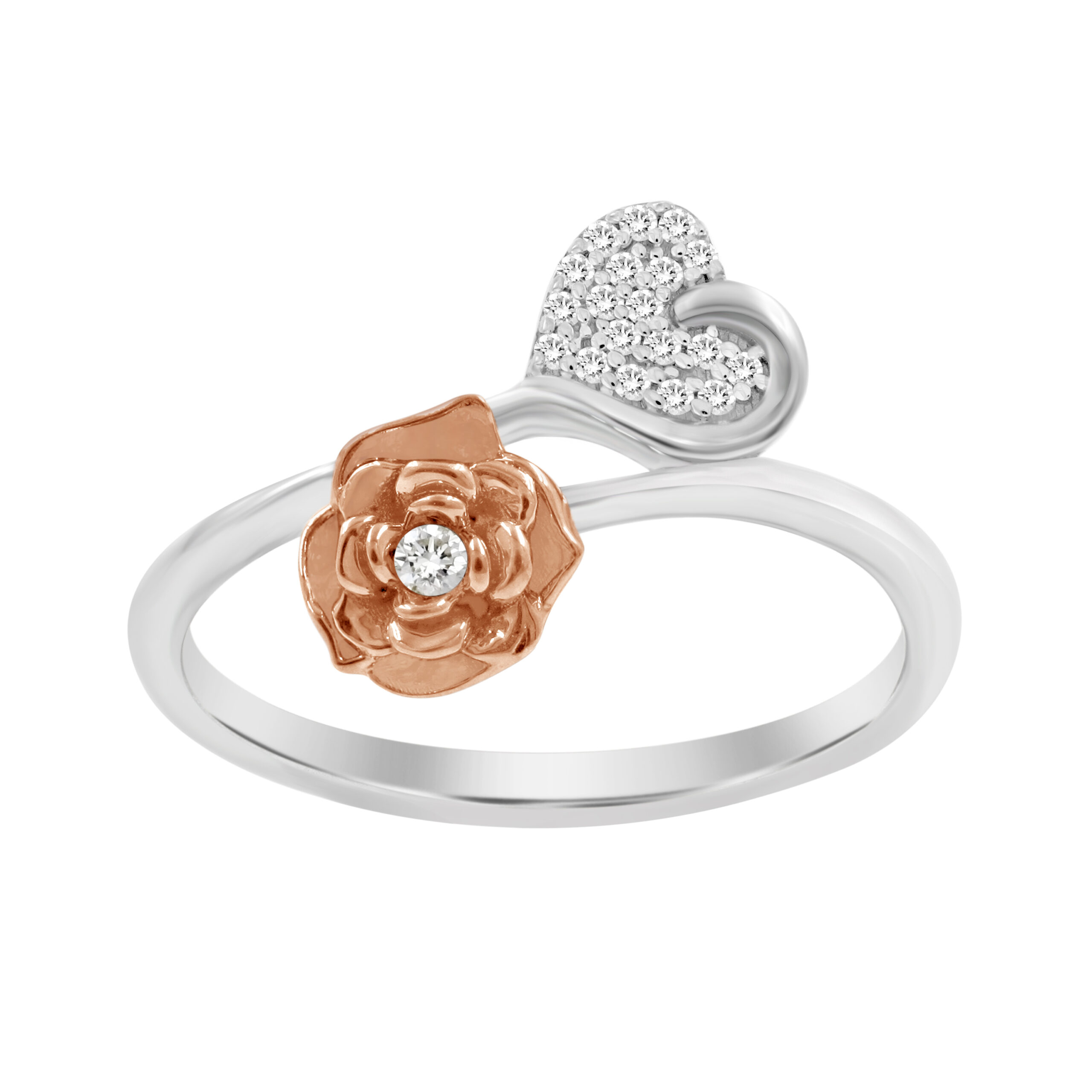 LADIES RING 0.05CT ROUND DIAMOND 10K WHITE/ROSE GOLD