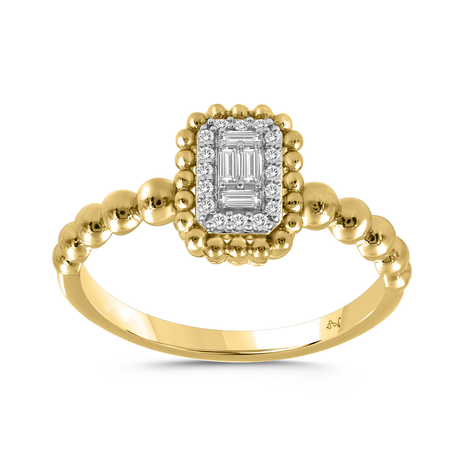 LADIES RING 0.10CT ROUND/BAGUETTE DIAMOND 10K YELLOW GOLD