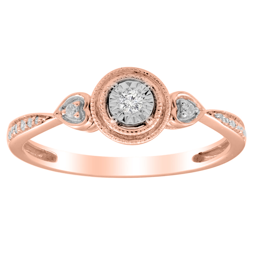 LADIES RING 0.10CT ROUND DIAMOND 10K ROSE GOLD