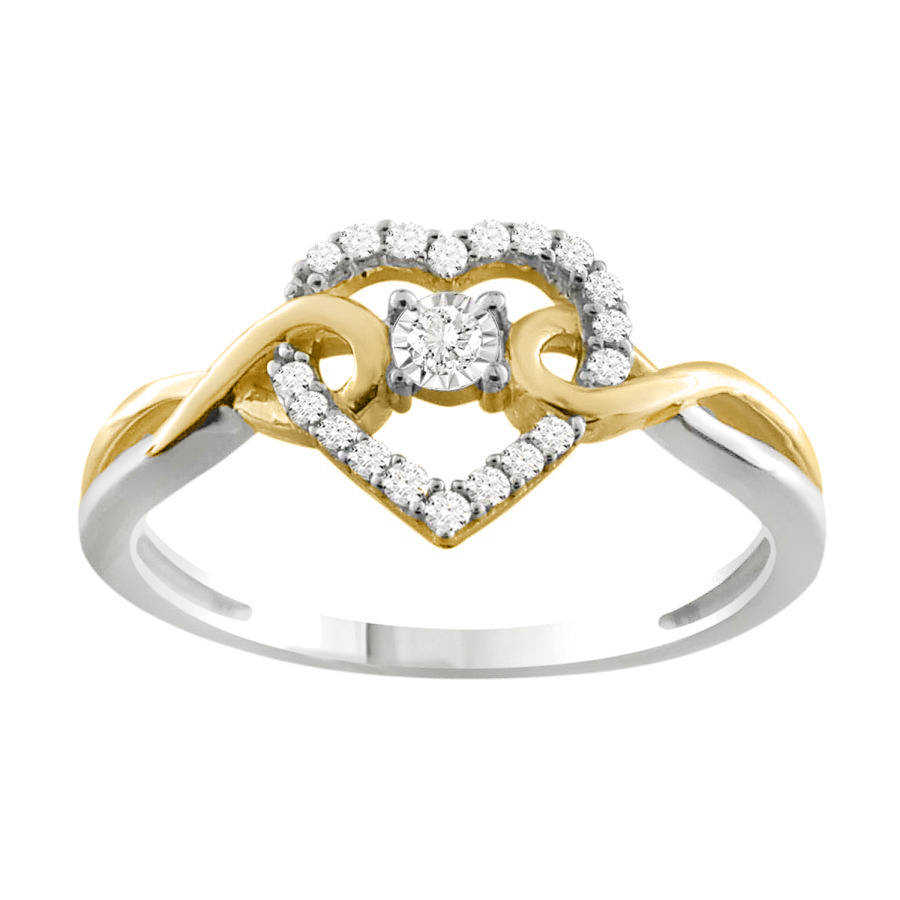 LADIES RING 0.10CT ROUND DIAMOND 10K WHITE/YELLOW GOLD