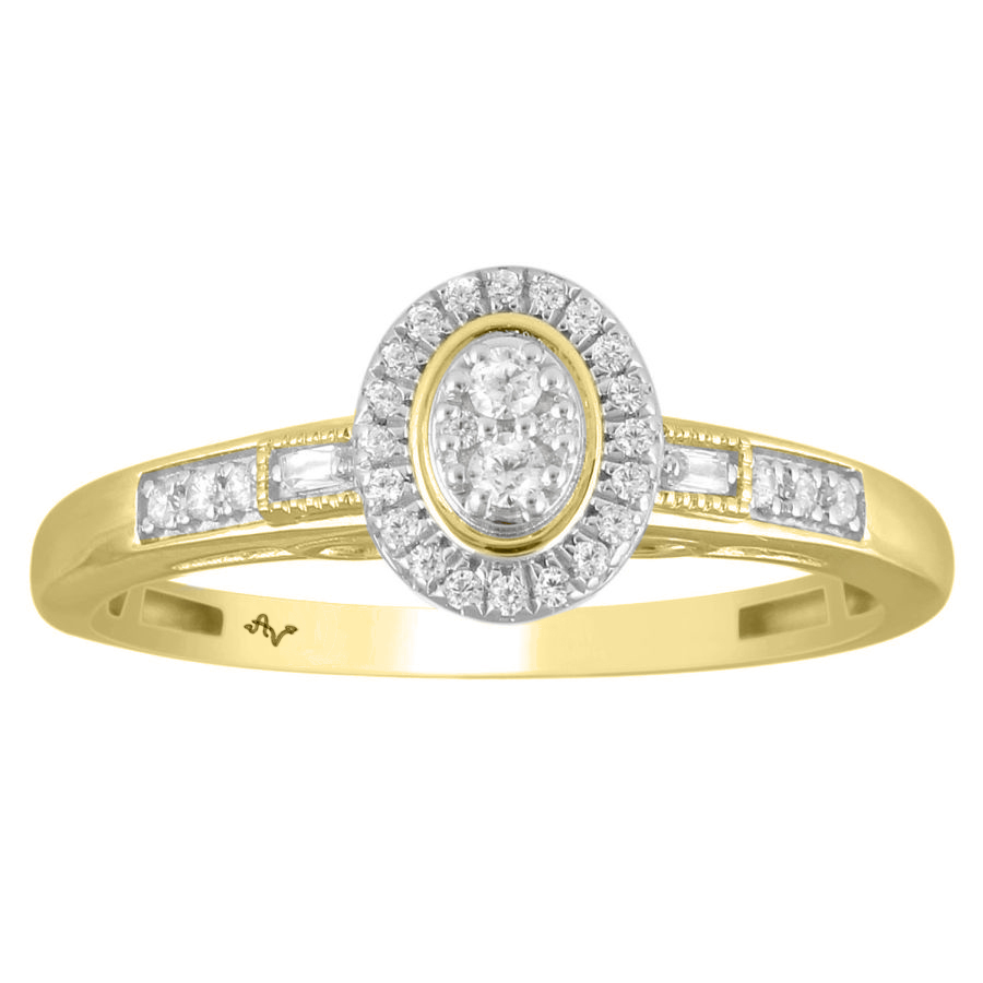 LADIES RING 0.15CT ROUND/BAGUETTE DIAMOND 10K YELLOW GOLD