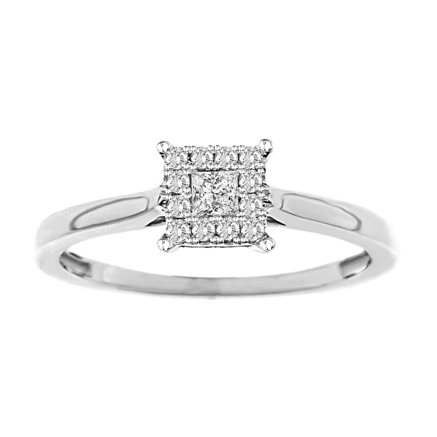 LADIES RING 0.15CT ROUND/PRINCESS DIAMOND 14K WHITE GOLD