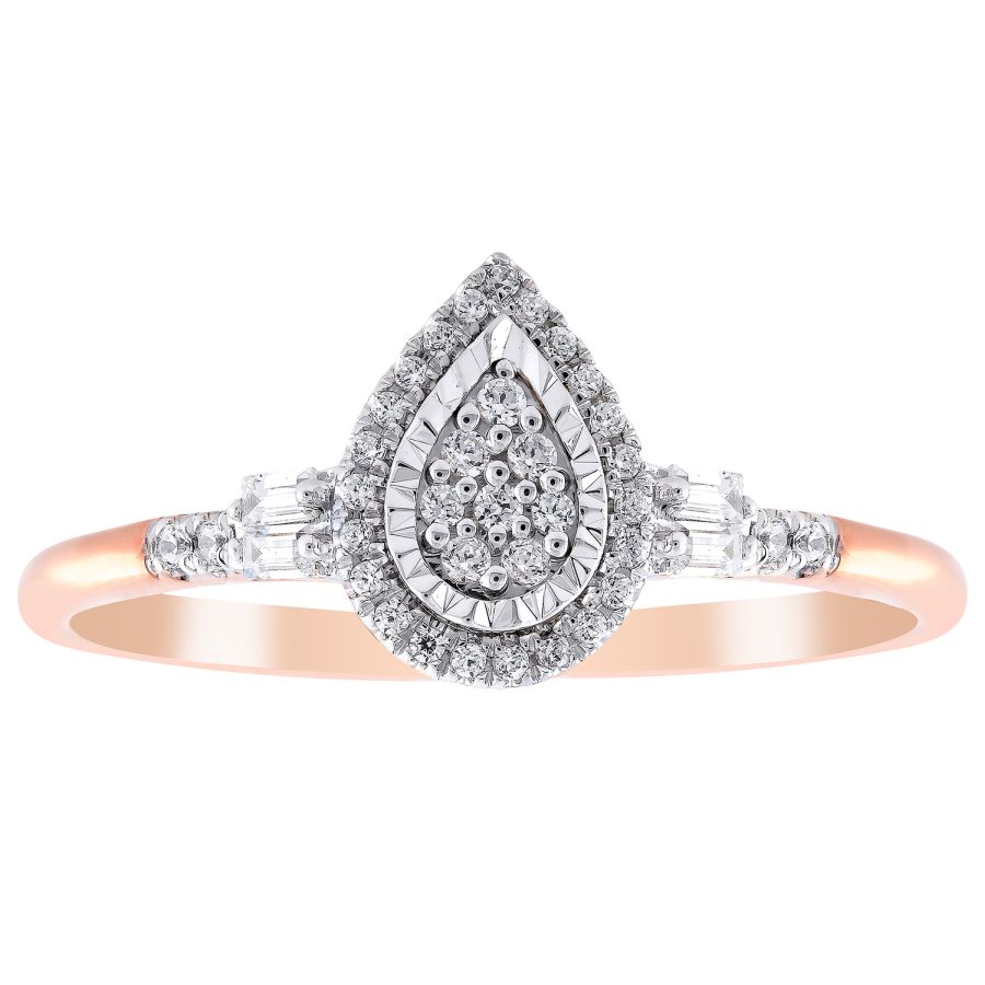 LADIES RING 0.20CT ROUND/BAGUETTE DIAMOND 10K ROSE GOLD