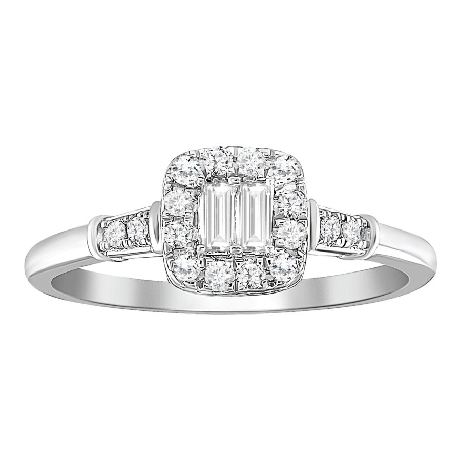 Home Rings LADIES RING 0.20CT ROUND/BAGUETTE DIAMOND 10K WHITE GOLD