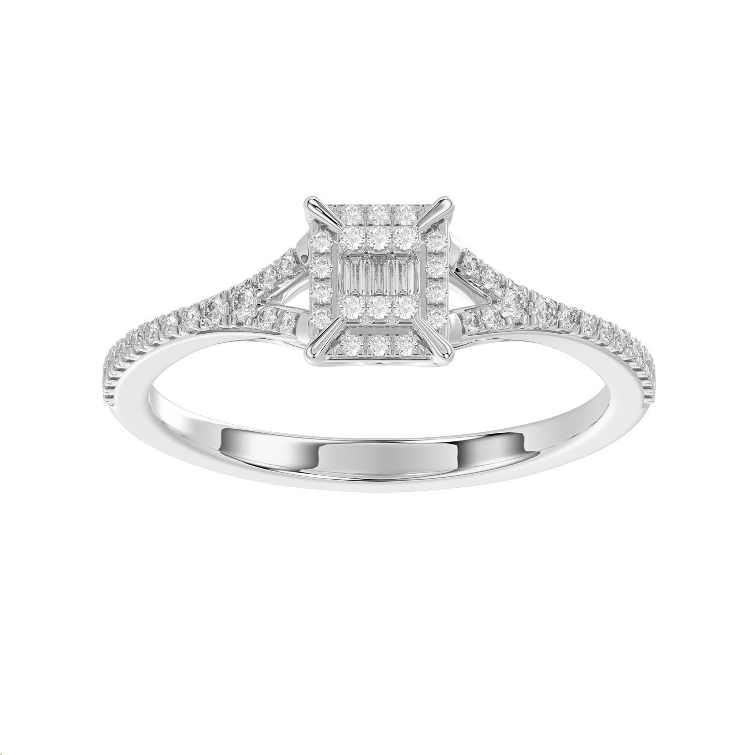 Home Rings LADIES RING 0.20CT ROUND/BAGUETTE DIAMOND 14K WHITE GOLD