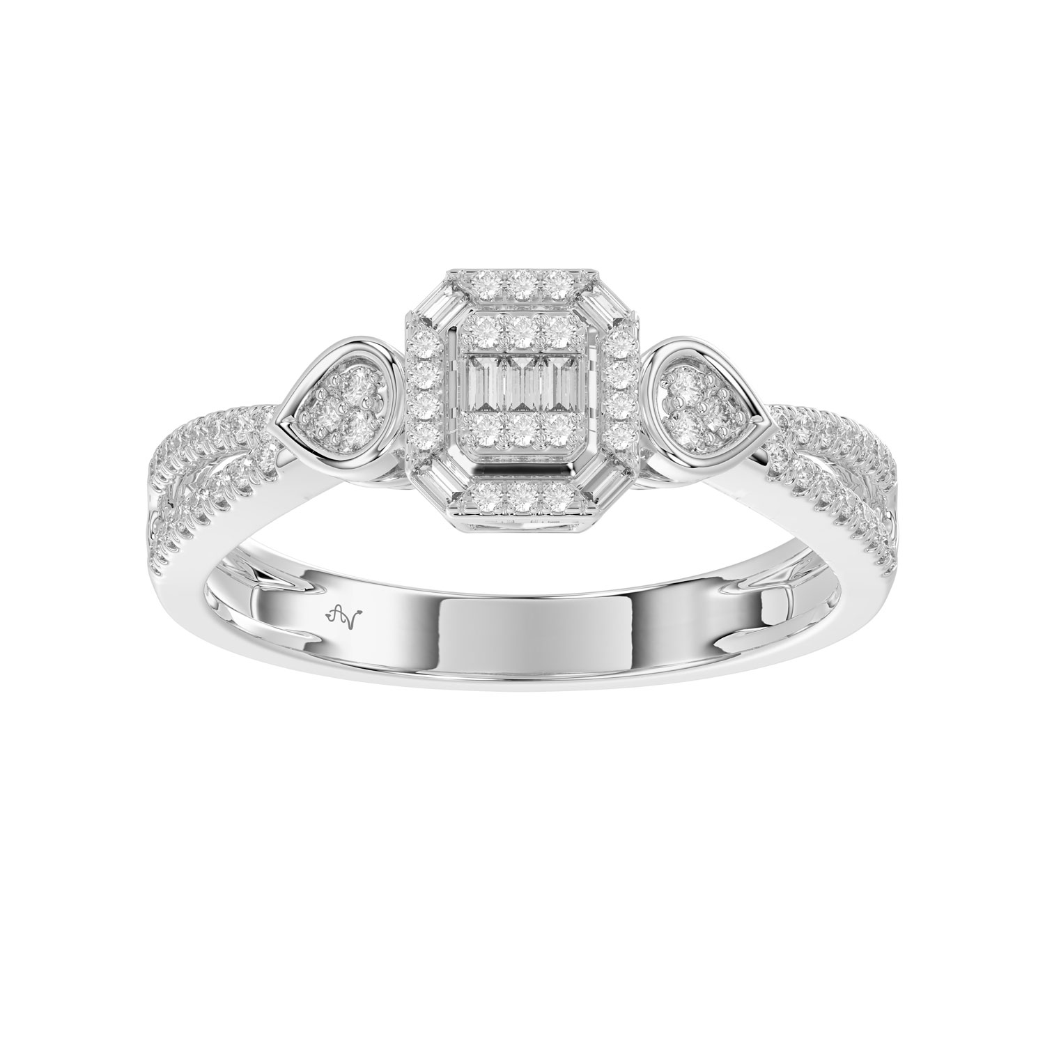 LADIES RING 0.20CT ROUND/BAGUETTE DIAMOND 14K WHITE GOLD