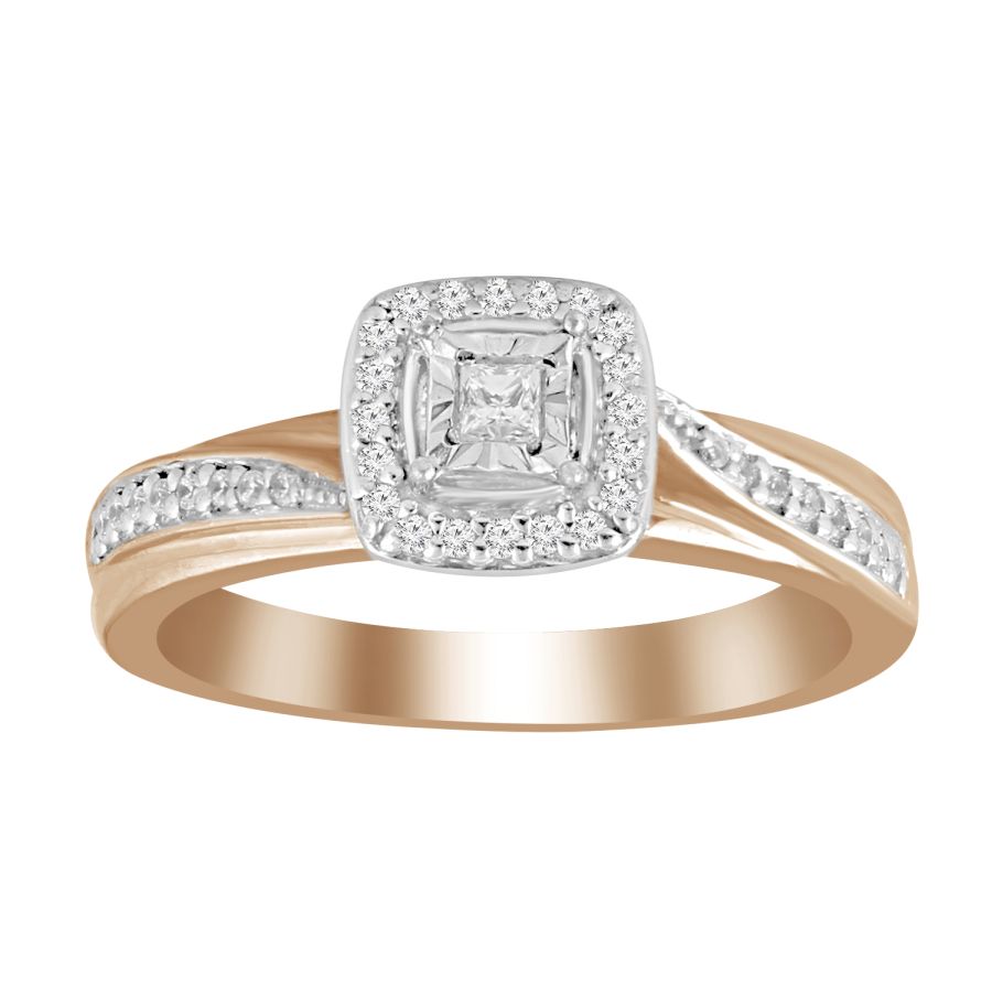 LADIES RING 0.20CT ROUND/PRINCESS DIAMOND 10K ROSE GOLD