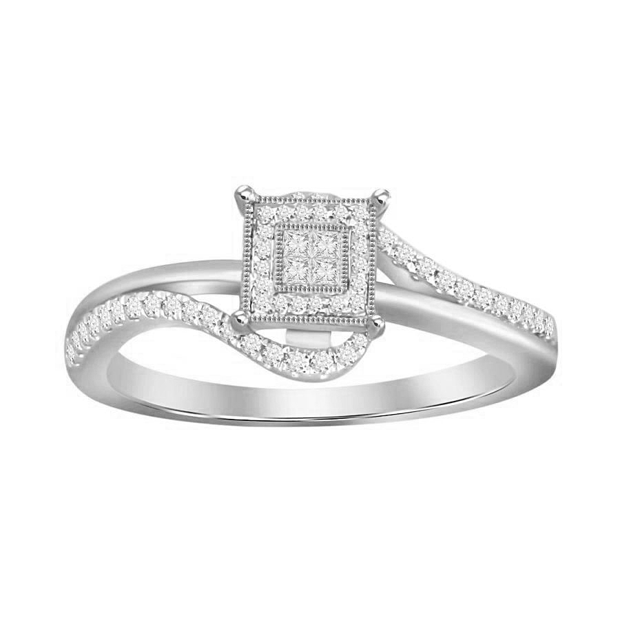 LADIES RING 0.20CT ROUND/PRINCESS DIAMOND 10K WHITE GOLD