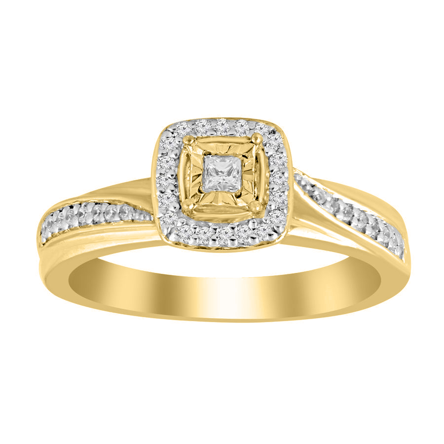 LADIES RING 0.20CT ROUND/PRINCESS DIAMOND 10K YELLOW GOLD
