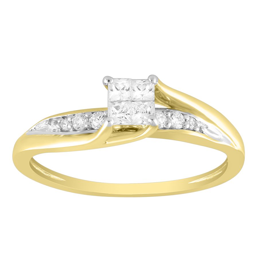 LADIES RING 0.20CT ROUND/PRINCESS DIAMOND 14K YELLOW GOLD