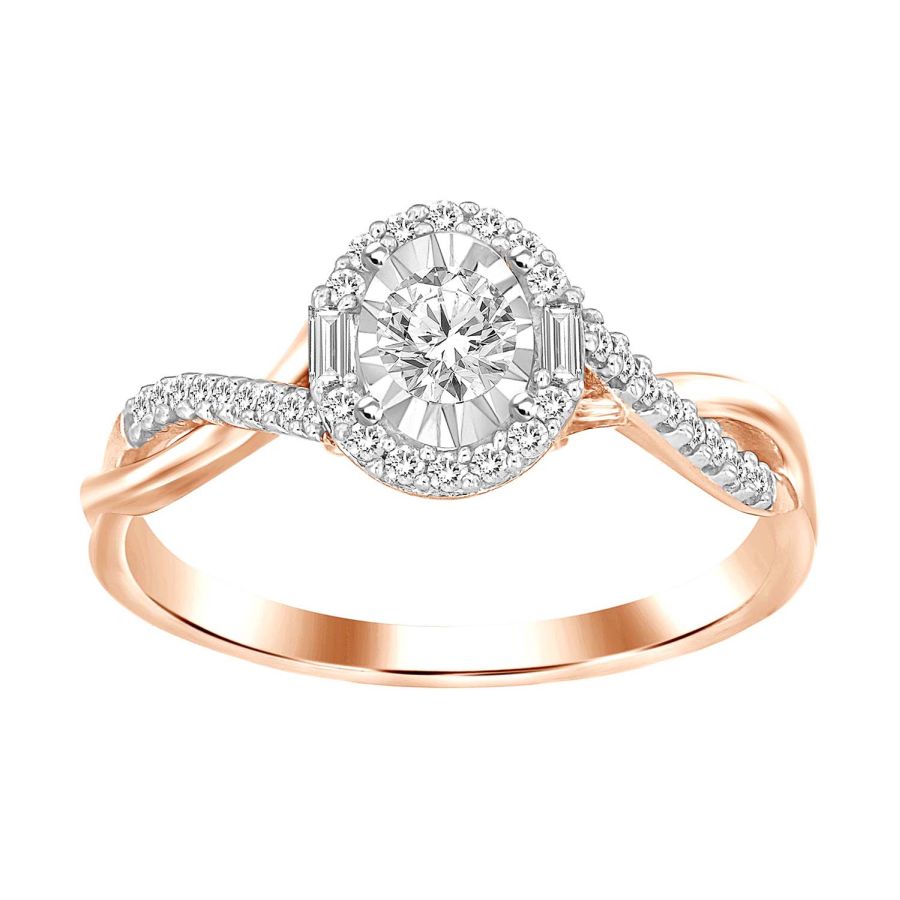LADIES RING 0.25CT ROUND/BAGUETTE DIAMOND 10K ROSE GOLD