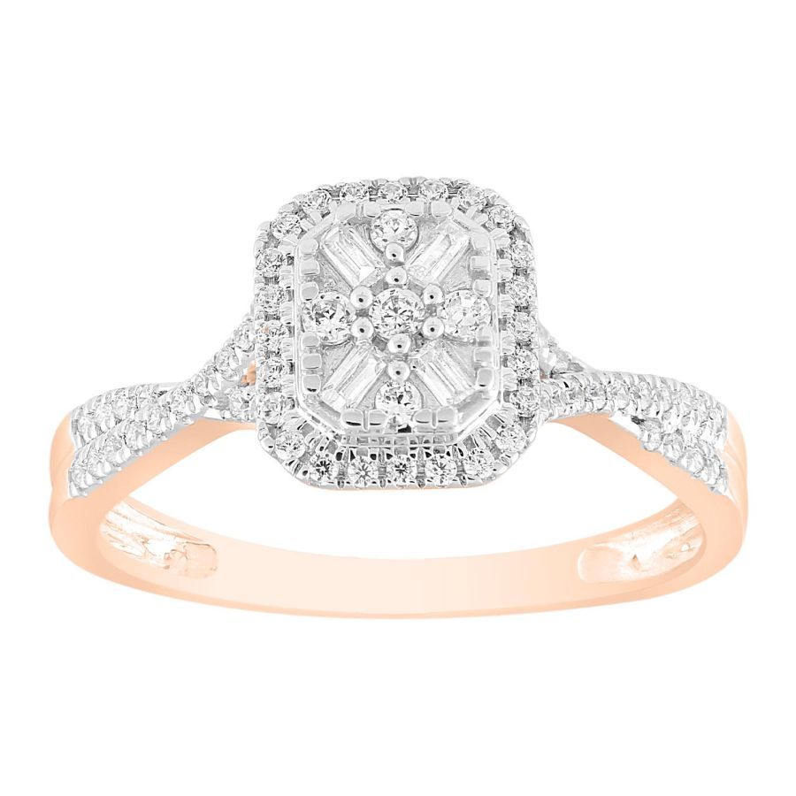 LADIES RING 0.25CT ROUND/BAGUETTE DIAMOND 10K ROSE GOLD