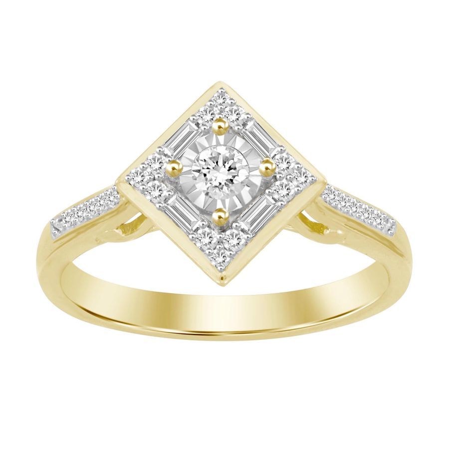 LADIES RING 0.25CT ROUND/BAGUETTE DIAMOND 10K YELLOW GOLD