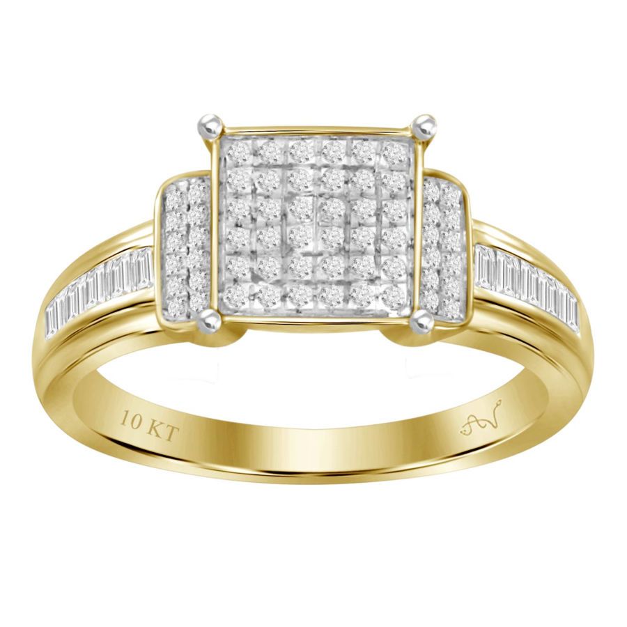 LADIES RING 0.25CT ROUND/BAGUETTE DIAMOND 10K YELLOW GOLD