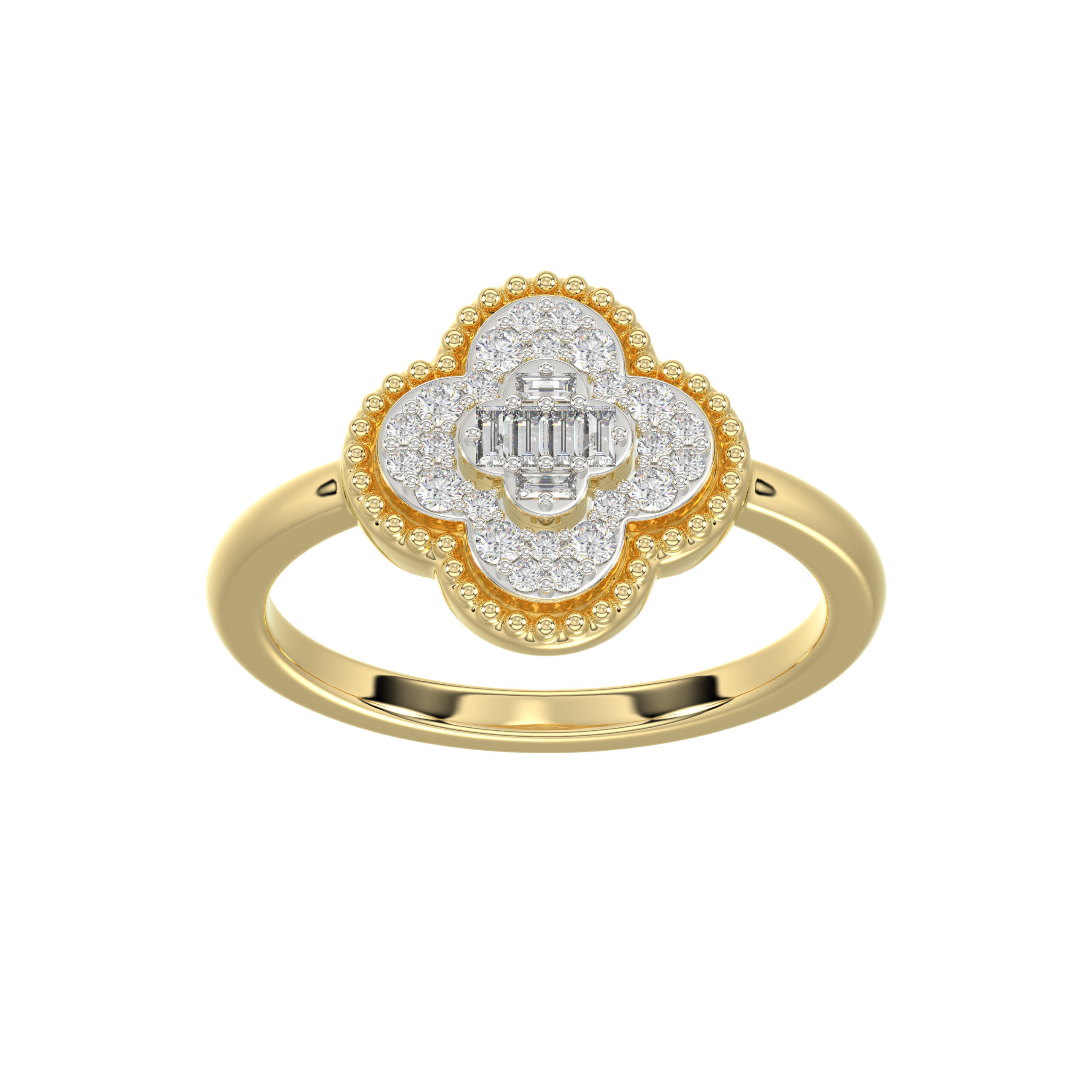LADIES RING 0.25CT ROUND/BAGUETTE DIAMOND 10K YELLOW GOLD