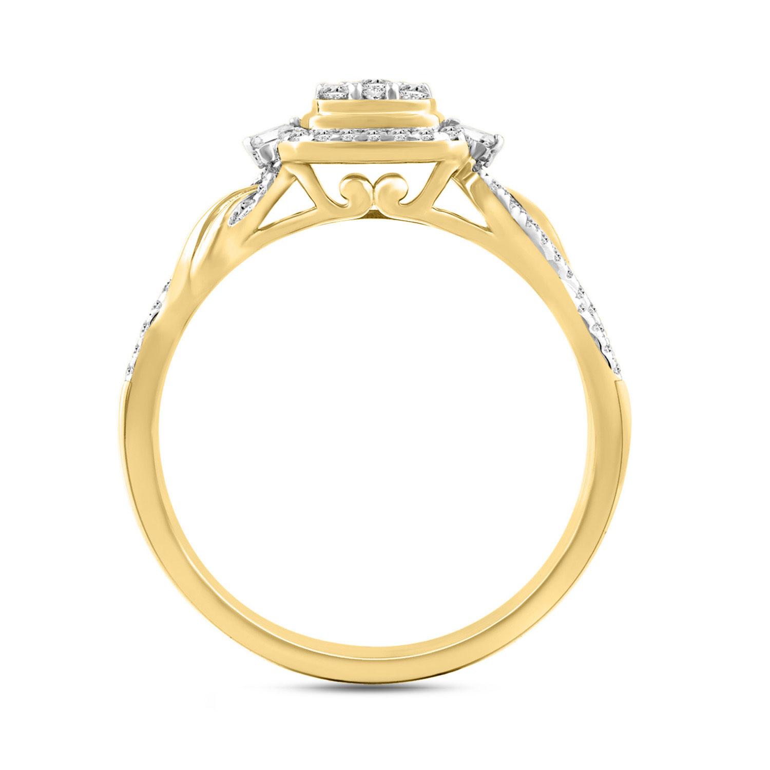 LADIES RING 0.25CT ROUND/BAGUETTE DIAMOND 10K YELLOW GOLD