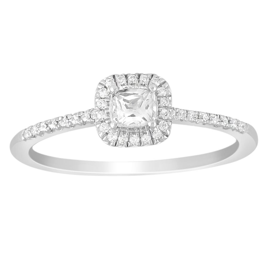 LADIES RING 0.25CT ROUND DARK BROWN DIAMOND 14K WHITE GOLD (CENTER STONE 0.16CT CUSHION DIAMOND)