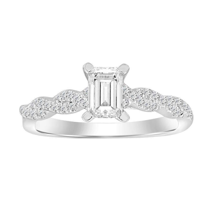 LADIES RING 0.25CT ROUND/EMERALD DIAMOND 14K WHITE GOLD(SI QUALITY) (CENTER STONE 0.75 CT EMERALD DIAMOND)