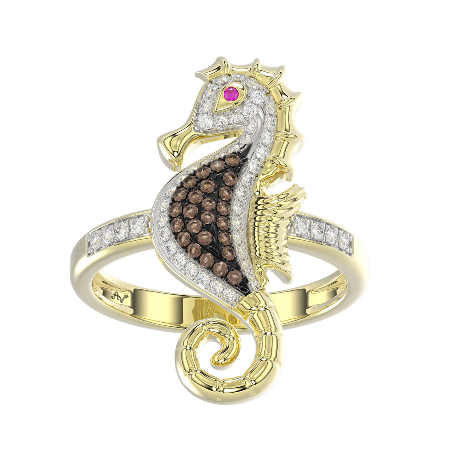 LADIES RING 0.25CT ROUND/RUBY DIAMOND 14K YELLOW GOLD