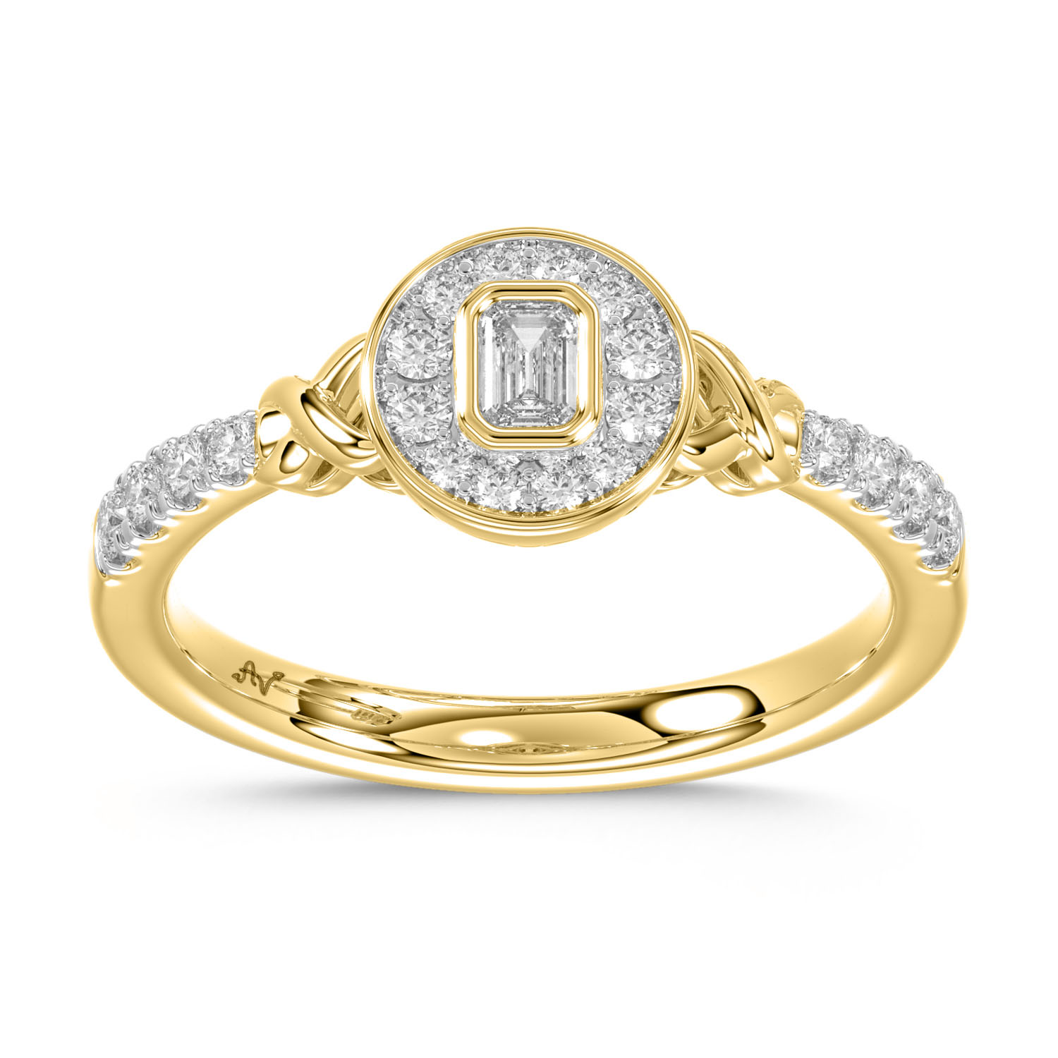 LADIES RING 0.33CT EMERALD/ROUND DIAMOND 14K YELLOW GOLD