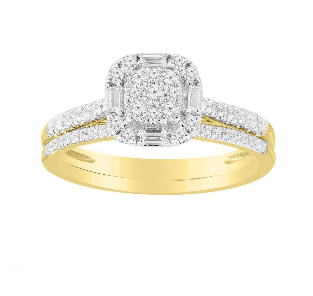 LADIES RING 0.33CT ROUND/BAGUETTE DIAMOND 10K YELLOW GOLD