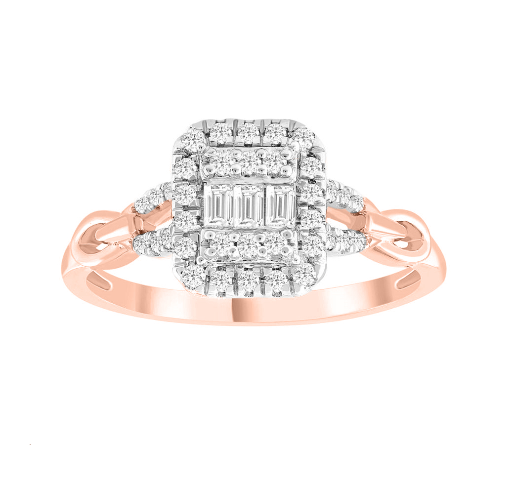 LADIES RING 0.33CT ROUND/BAGUETTE DIAMOND 14K ROSE GOLD (SI QUALITY)