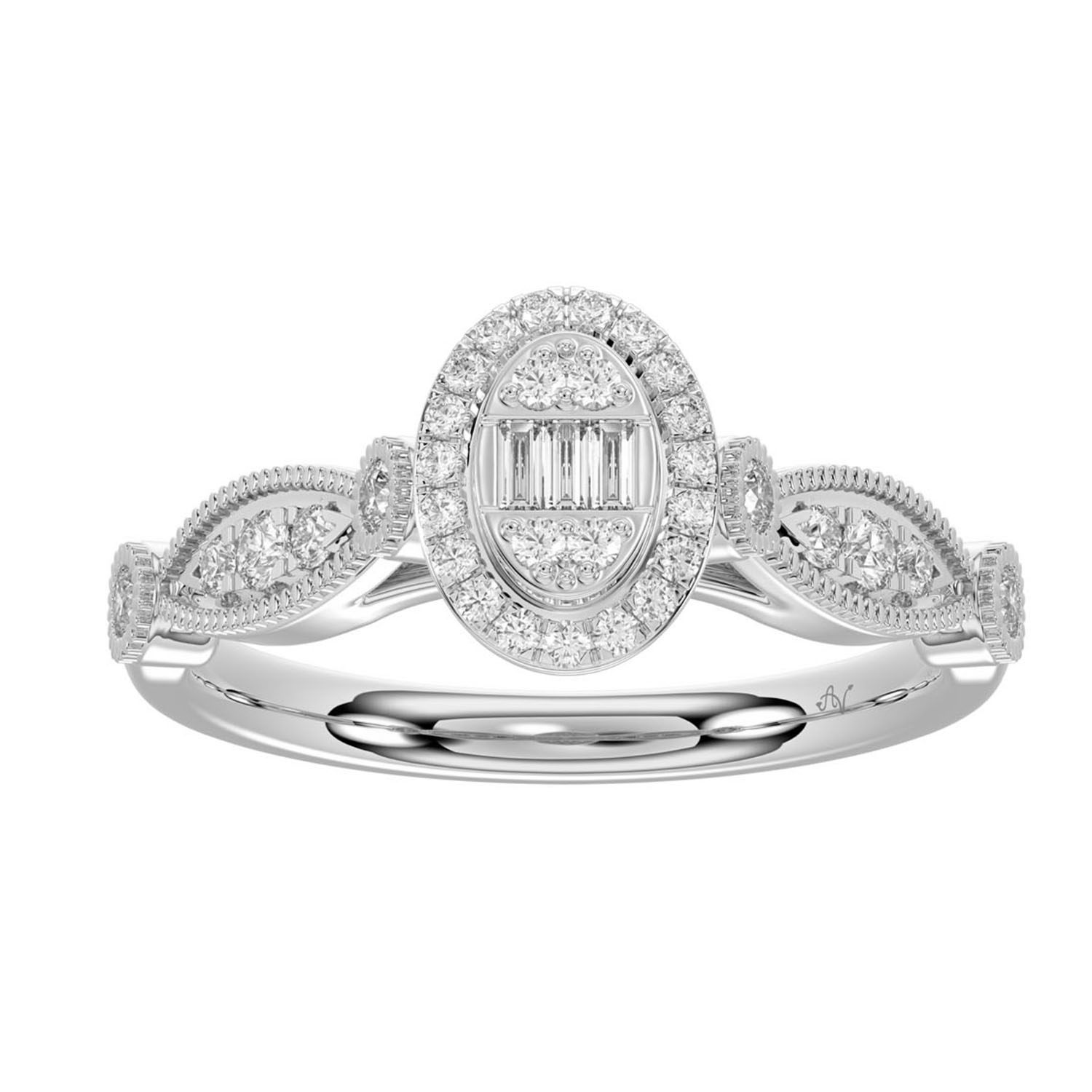 LADIES RING 0.33CT ROUND/BAGUETTE DIAMOND 14K WHITE GOLD
