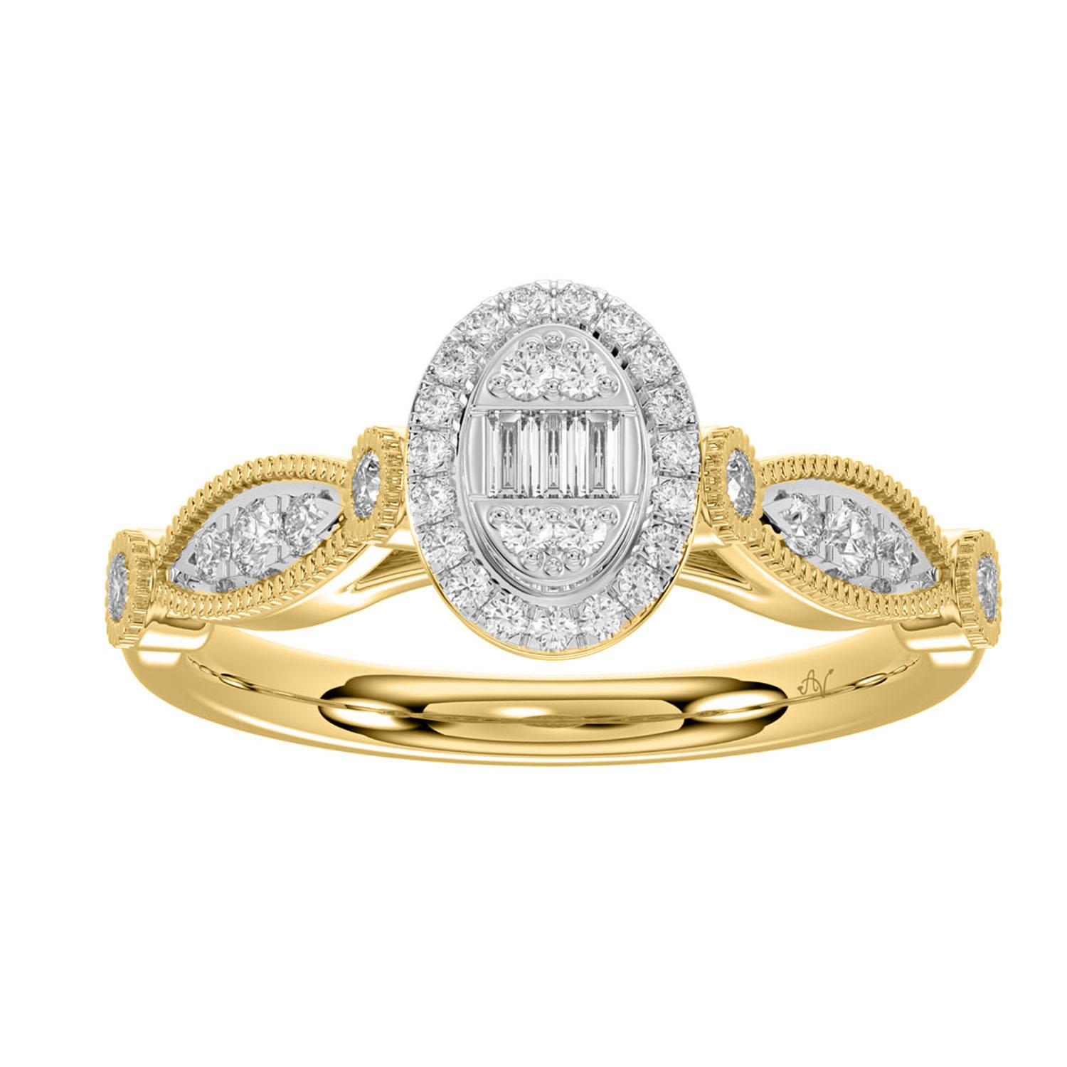 LADIES RING 0.33CT ROUND/BAGUETTE DIAMOND 14K YELLOW GOLD