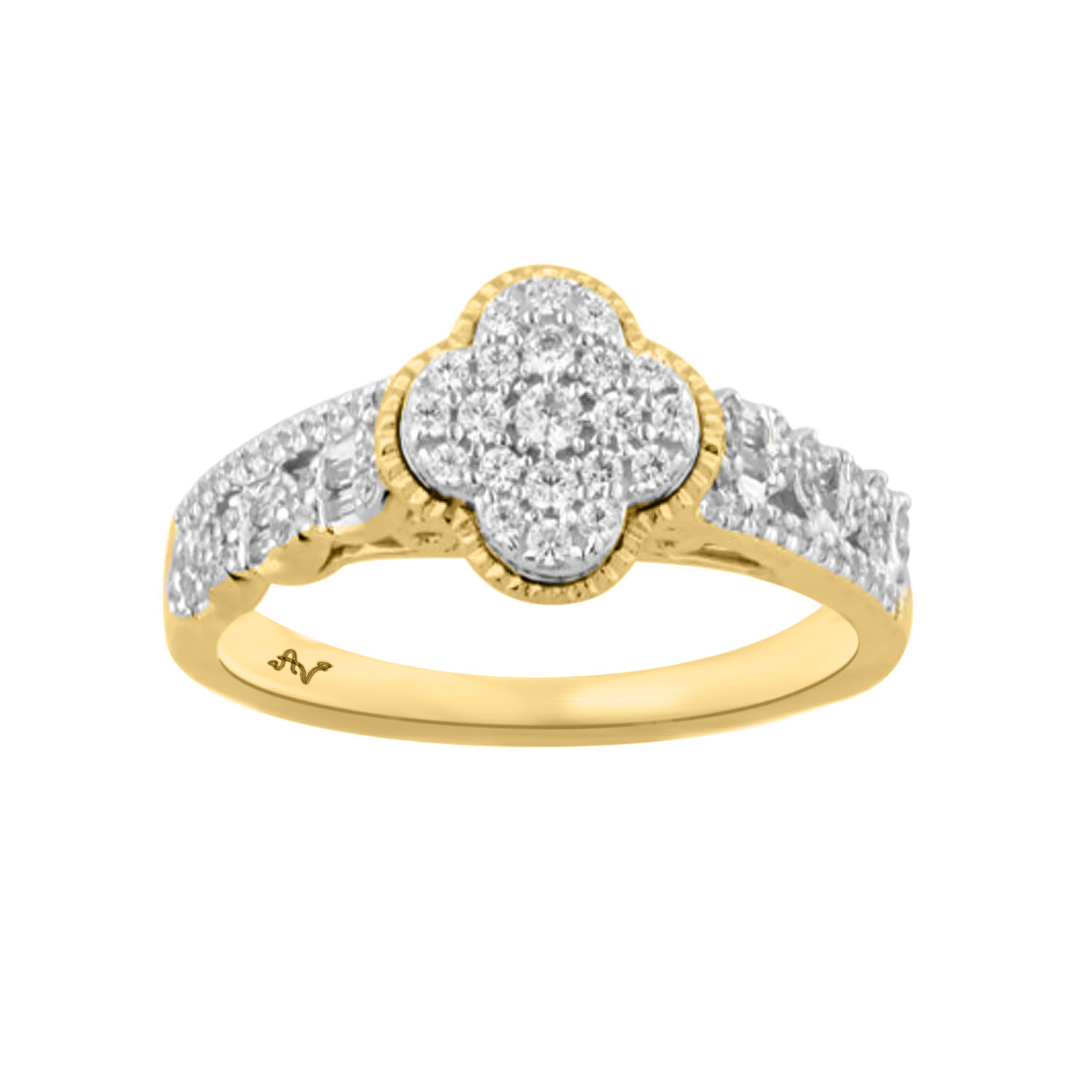 LADIES RING 0.33CT ROUND/BAGUETTE DIAMOND 14K YELLOW GOLD