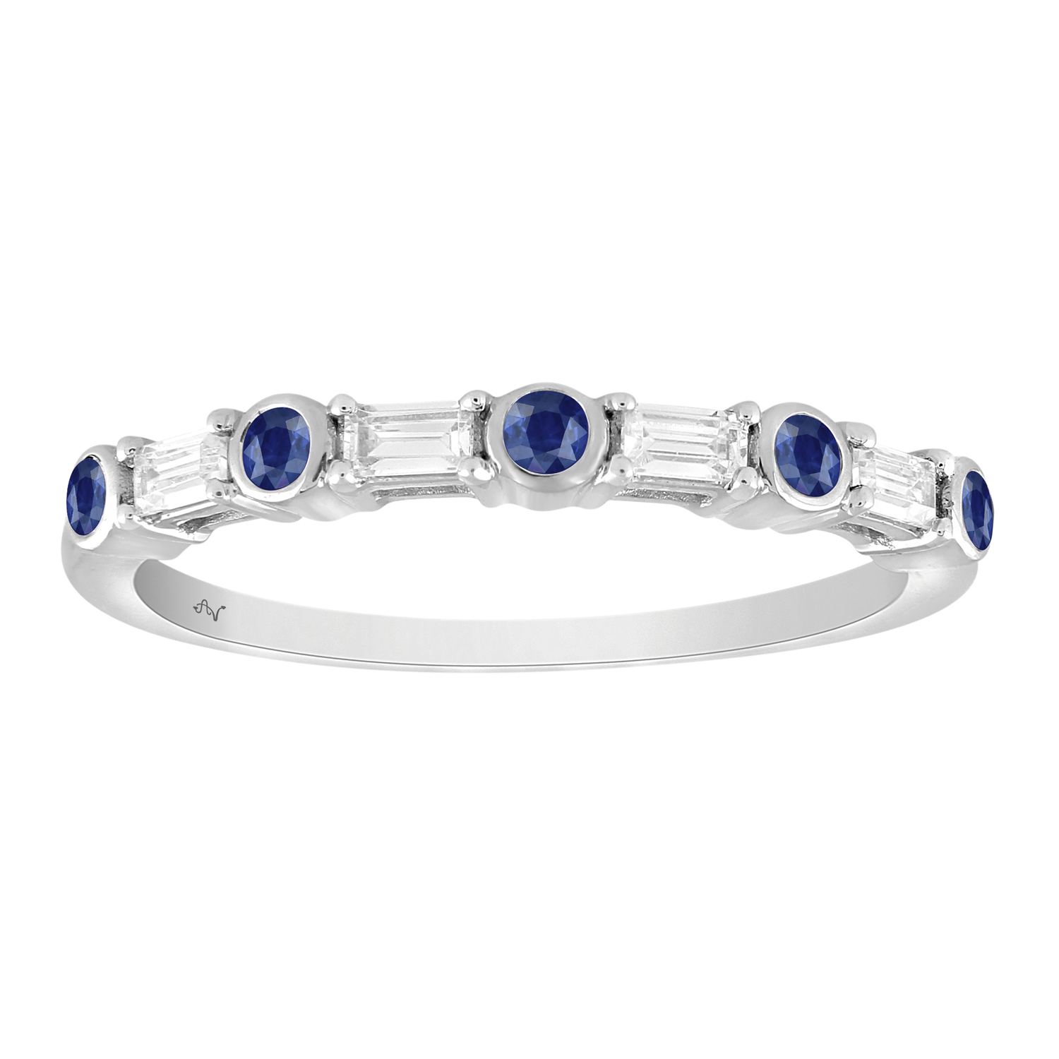Home Rings LADIES RING 0.33CT ROUND/BAGUETTE/ROUND SAPPHIRE DIAMOND 14K WHITE GOLD (CENTER STONE 0.16CT ROUND DIAMOND)